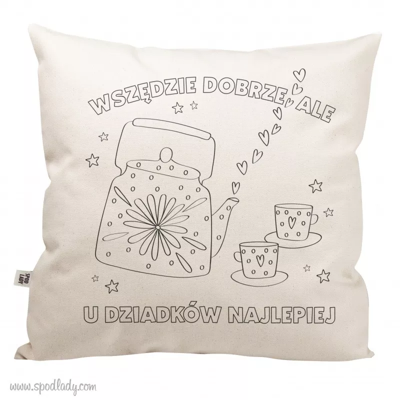 Poduszka "Herbatka u dziadków" - kolorowanka