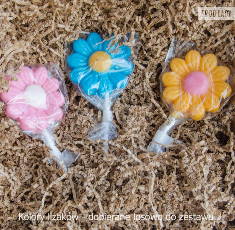 • lizak w kształcie stokrotki (kolor dobierany jest losowo),