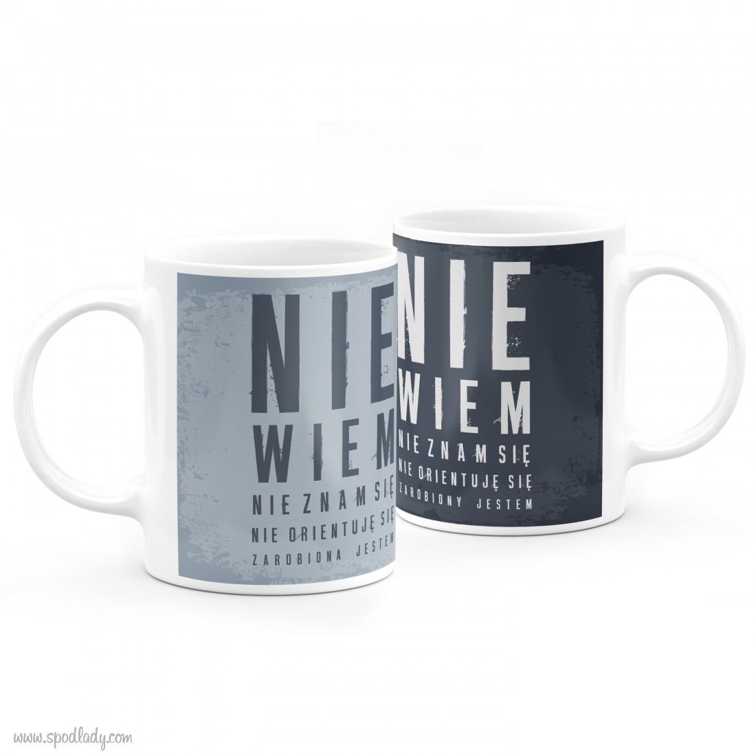 Kolor kubasa w wersji damskiej jest bliższy szarości, niż błękitu. Kolor kubka może się nieco różnić od prezentowanego na zdjęciach. "Zacieki" i "odbicia" na grafice kubka są naszym celowym działaniem.