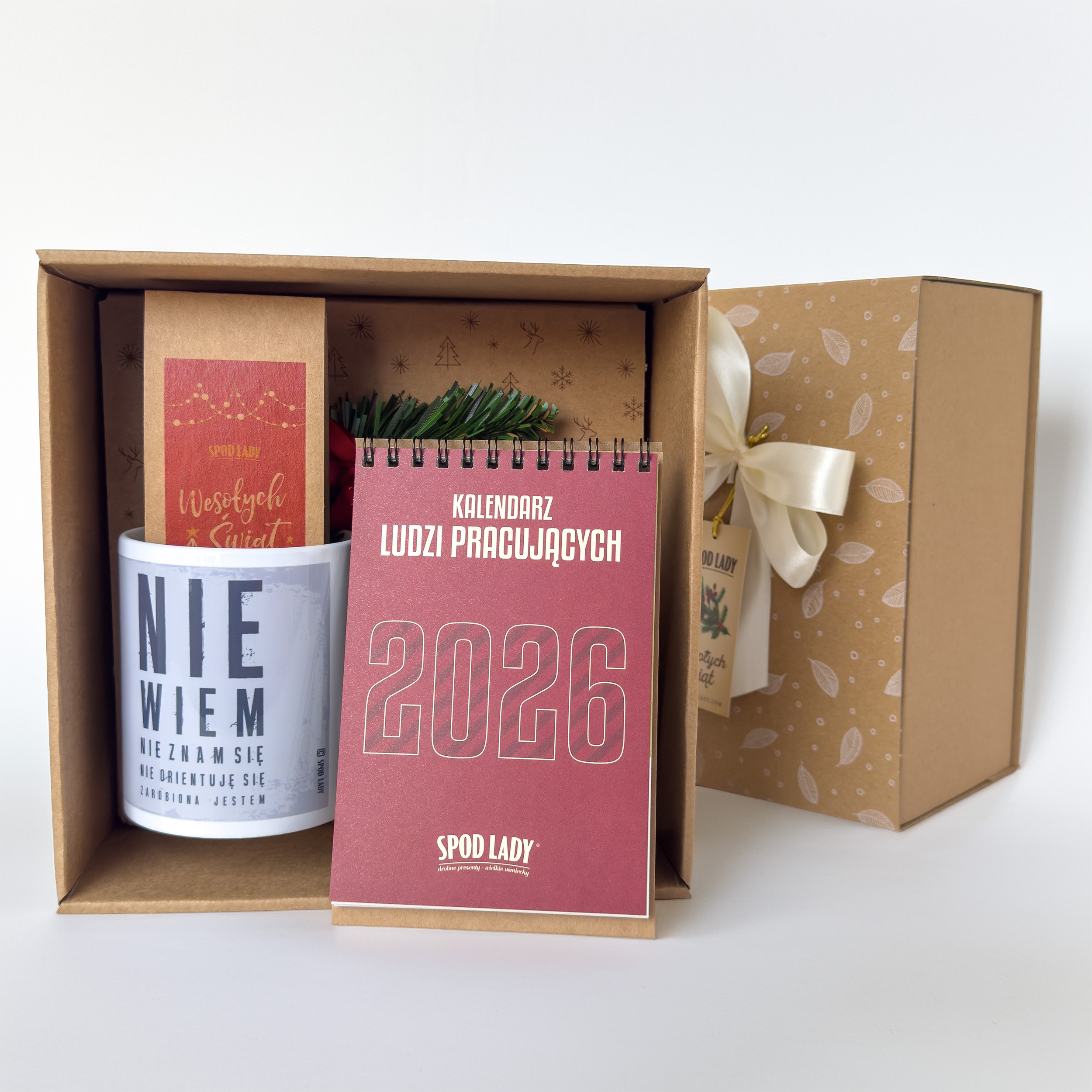 Zestaw "Ludzi pracy" to doskonały prezent dla pracownika, kolegi z pracy, czy znajomej z kalendarzem na 2026 rok, kubkiem i herbatką. Dostępny jest w trzech wersjach do wyboru: