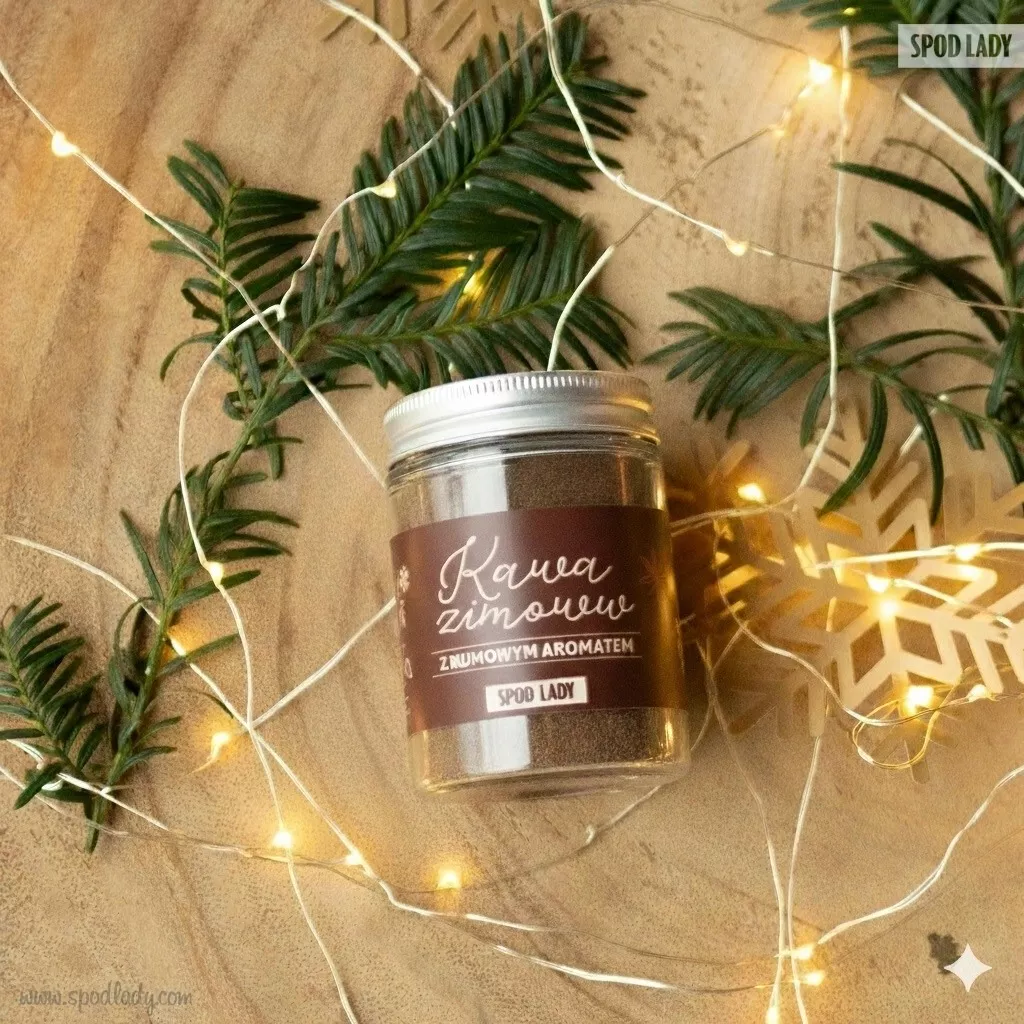 Kawa zimowa.  Kawa rozpuszczalna, naturalna mieszanka przypraw w zmiennych proporcjach (imbir, cynamon, kardamon, goździki).