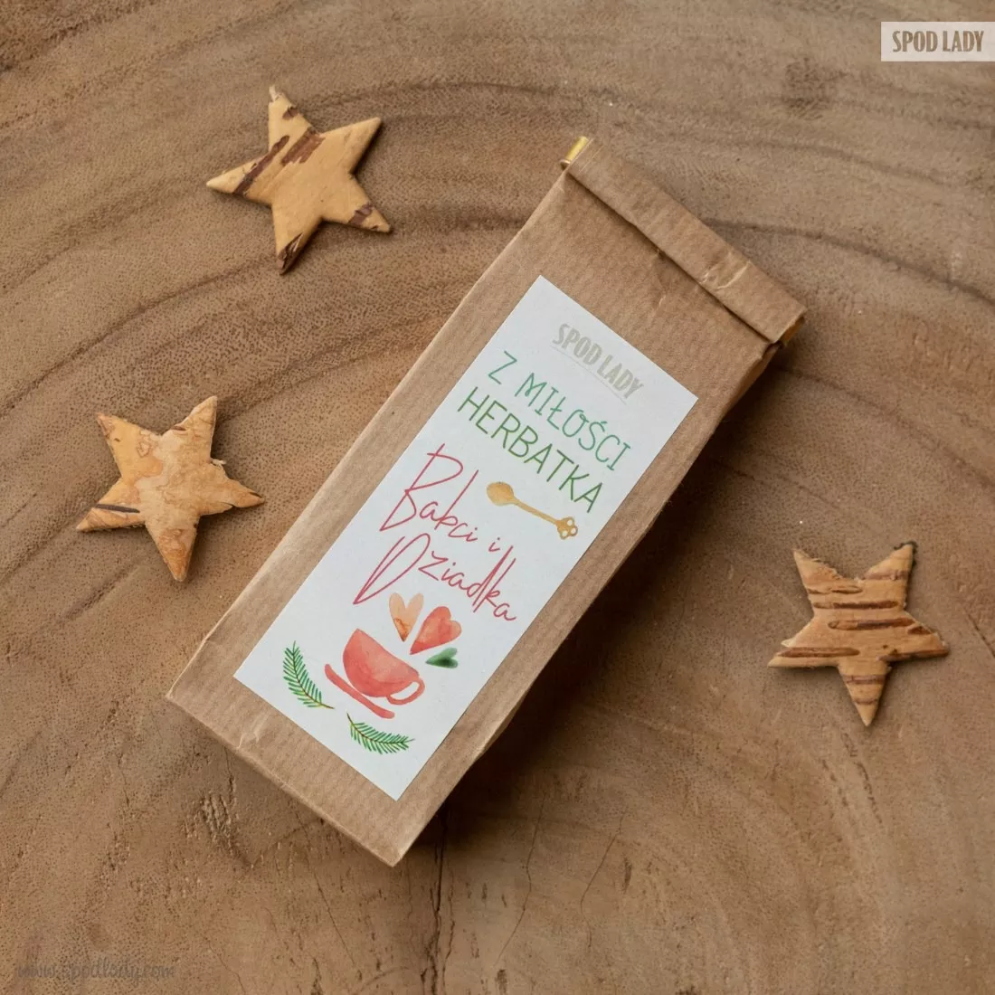 • Herbata „Z miłości – herbatka babci i dziadka” to aromatyczna mieszanka wysokiej jakości herbaty. Subtelne dekoracje cukrowe nie tylko dodają uroku, ale również podkreślają wyjątkowy charakter herbaty. Delikatny aromat sprawia, że jest idealnym towarzyszem zimowych wieczorów, wprowadzając ciepło i przytulność do każdej chwili.