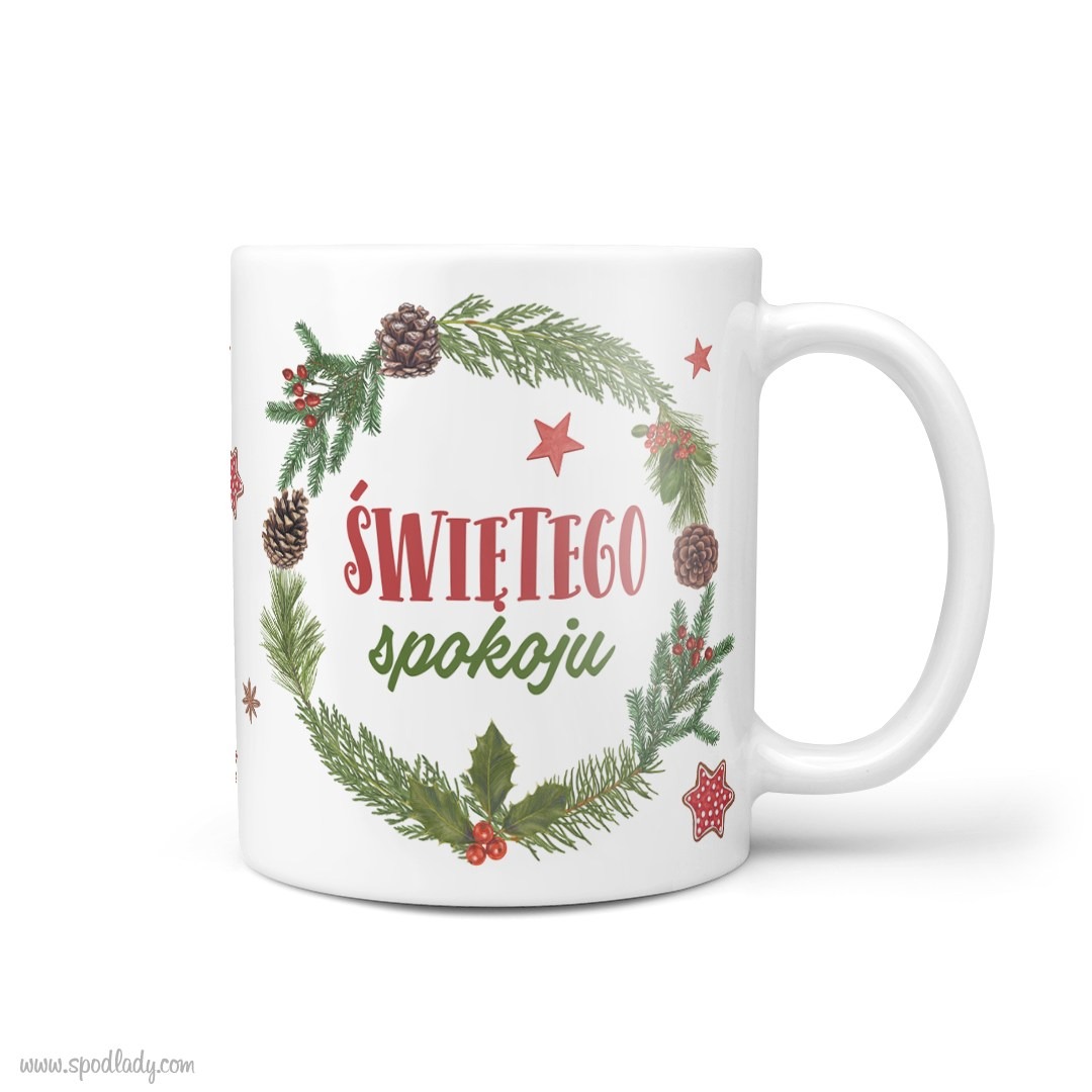 • Kubek ceramiczny Świętego Spokoju - ze świątecznym, motywującym nadrukiem