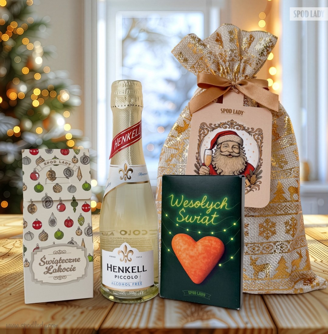 Zestaw w z³otym woreczku to elegancka, ¶wi±teczna kompozycja smaków i drobnych rado¶ci — idealny na czas choinki, firmowe obdarowywanie, rodzinne spotkania i wszelkie bo¿onarodzeniowe okazje.