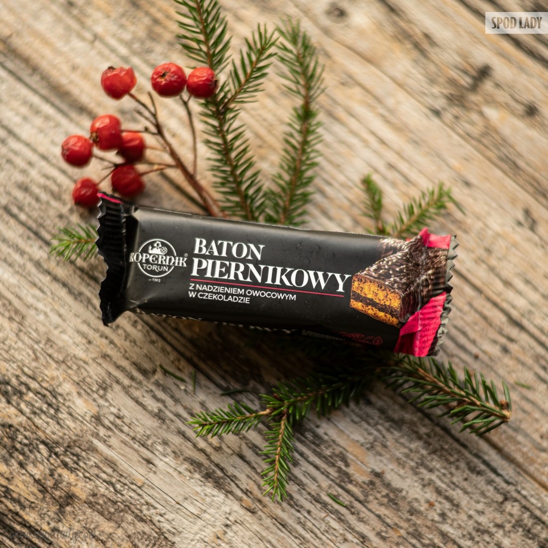 • Baton Piernikowy: korzenne długodojrzewające ciasto połączone warstwą owocowego nadzienia i oblane deserową czekoladą, zapakowane w formie batonika