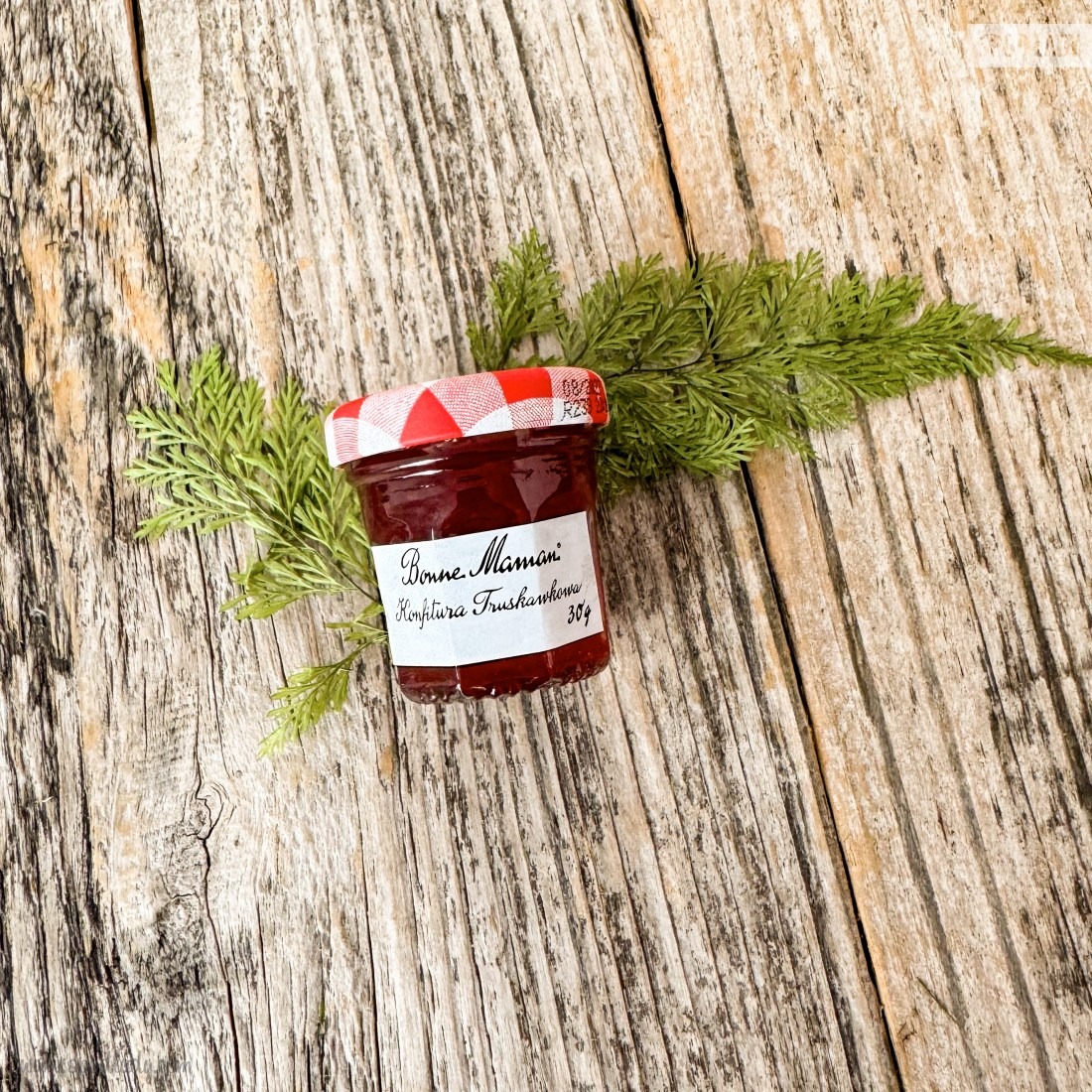• Bonne Mama Mini Konfitura (30g): mała dawka słodyczy w kolorowyn słoiczku - smak dobieramy w zależności od dostępności.