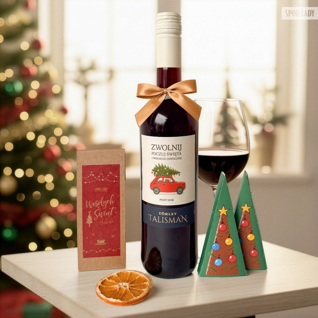• Zestaw "Zwolnij na święta" z czerwonym winem
