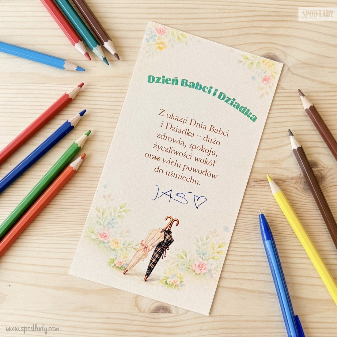 Ten serdeczny zestaw to pomysł na prezent dla Dziadków, który łączy w sobie słodki poczęstunek z gotowymi życzeniami. Całość została zapakowana w estetyczny woreczek, tworząc stylowy podarunek na Dzień Babci i Dziadka. Sprawdzi się również jako pomysł na upominek od grupy przedszkolnej, stanowiąc miły gest od najmłodszych.