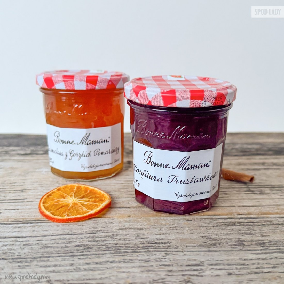 • Dwie konfitury Bonne Maman: słoiczki pełne owocowego smaku (morelowa oraz z figi fioletowej). Ich domowy charakter i estetyczne słoiczki idealnie pasują do wspólnego śniadania lub deseru (smaki konfitur dobierane są w zależności od dostępności).
