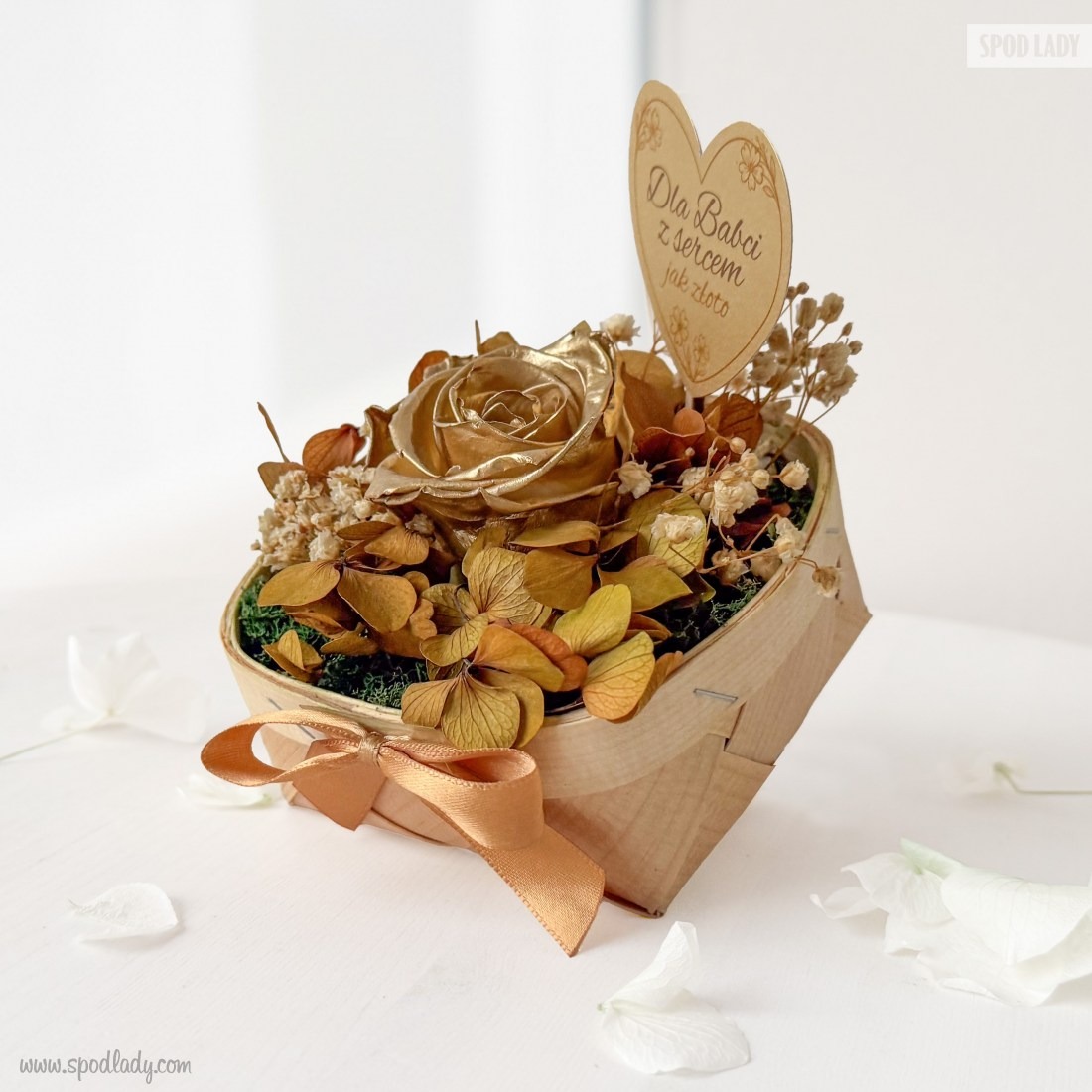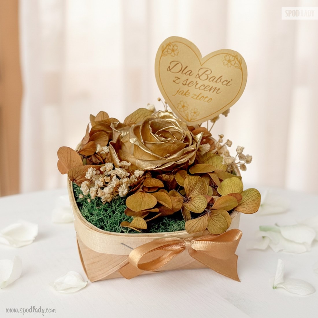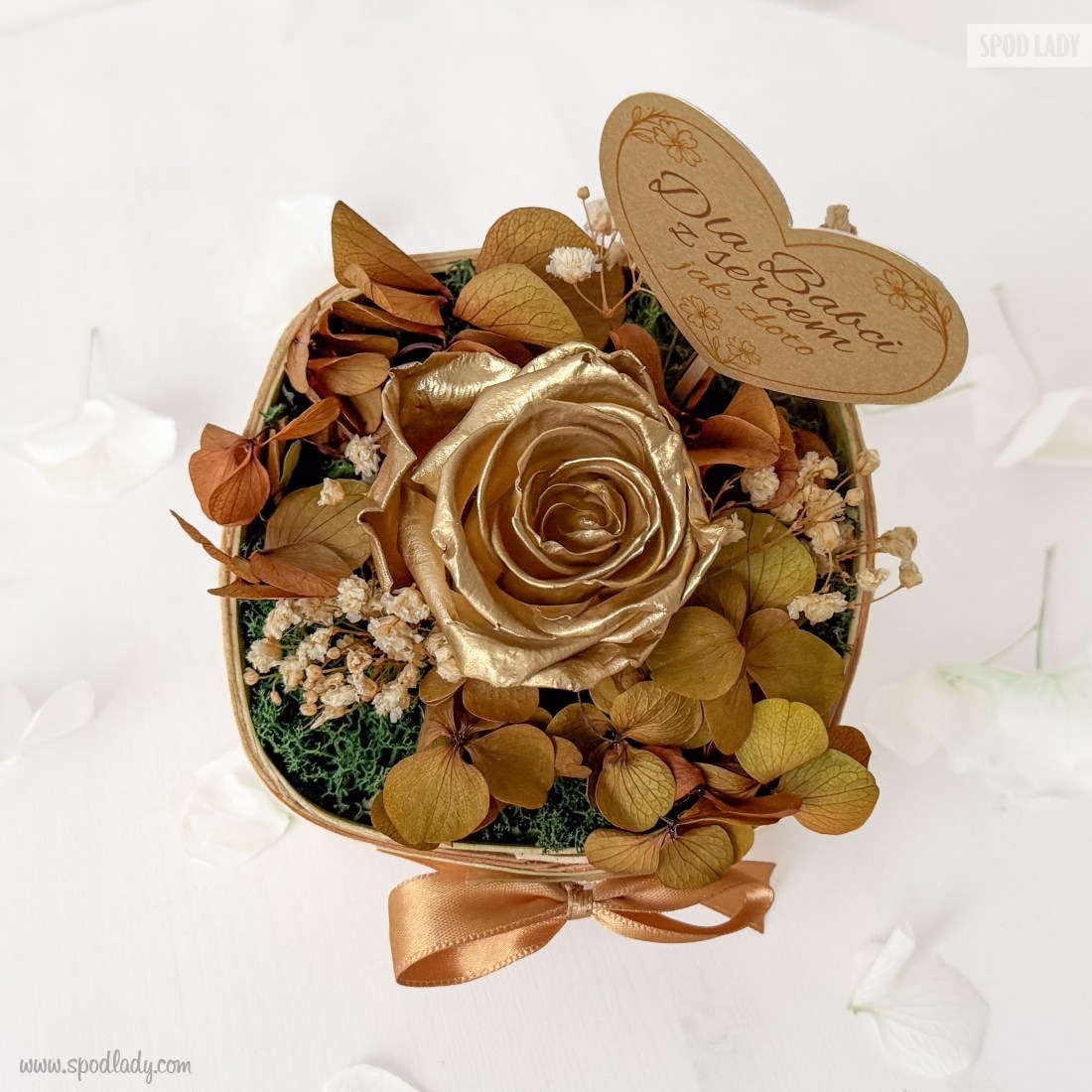 Wieczna róża - naturalna, stabilizowana róża złota w prezencie dla ukochanej Babci na Dzień Babci, urodziny i każdą inną okazję.