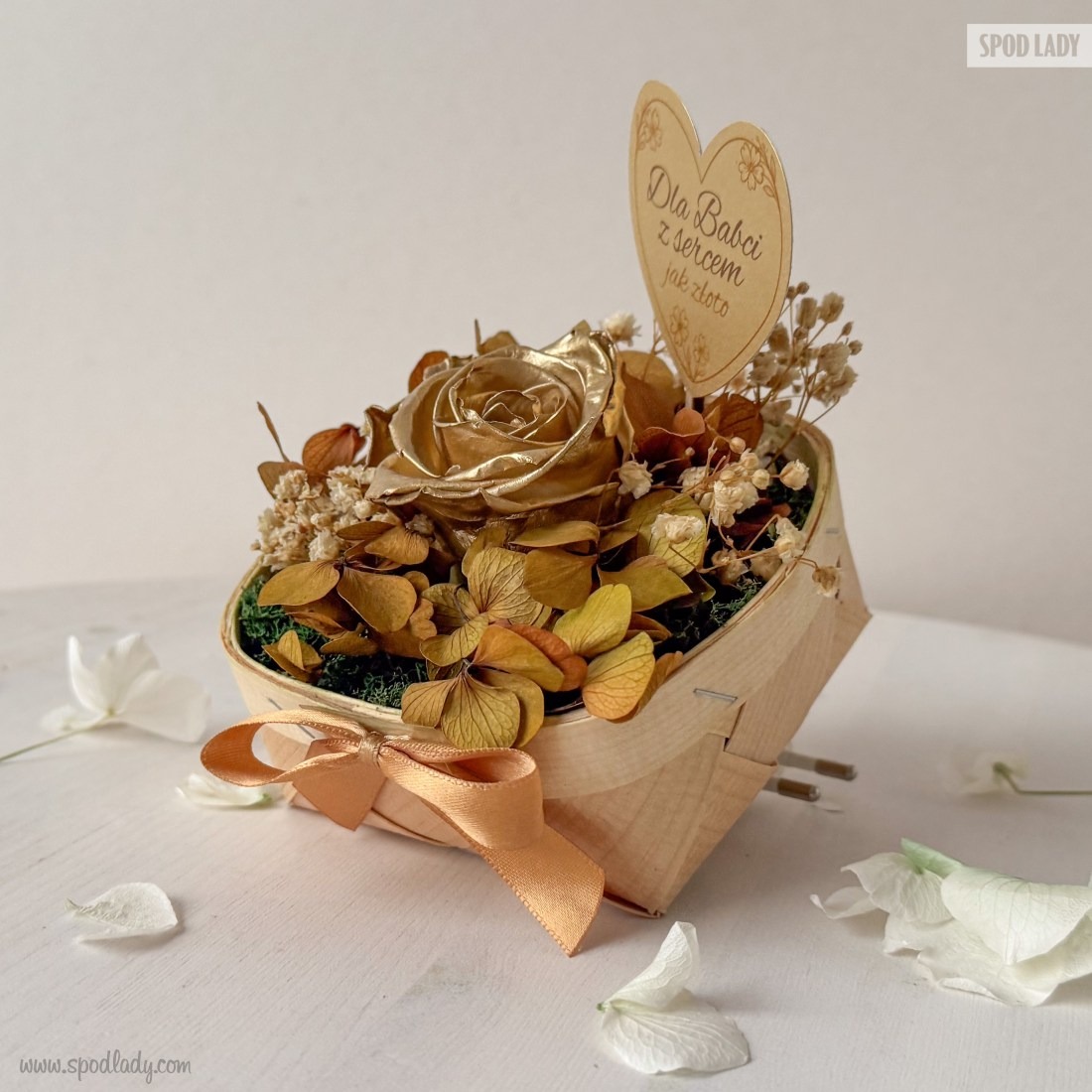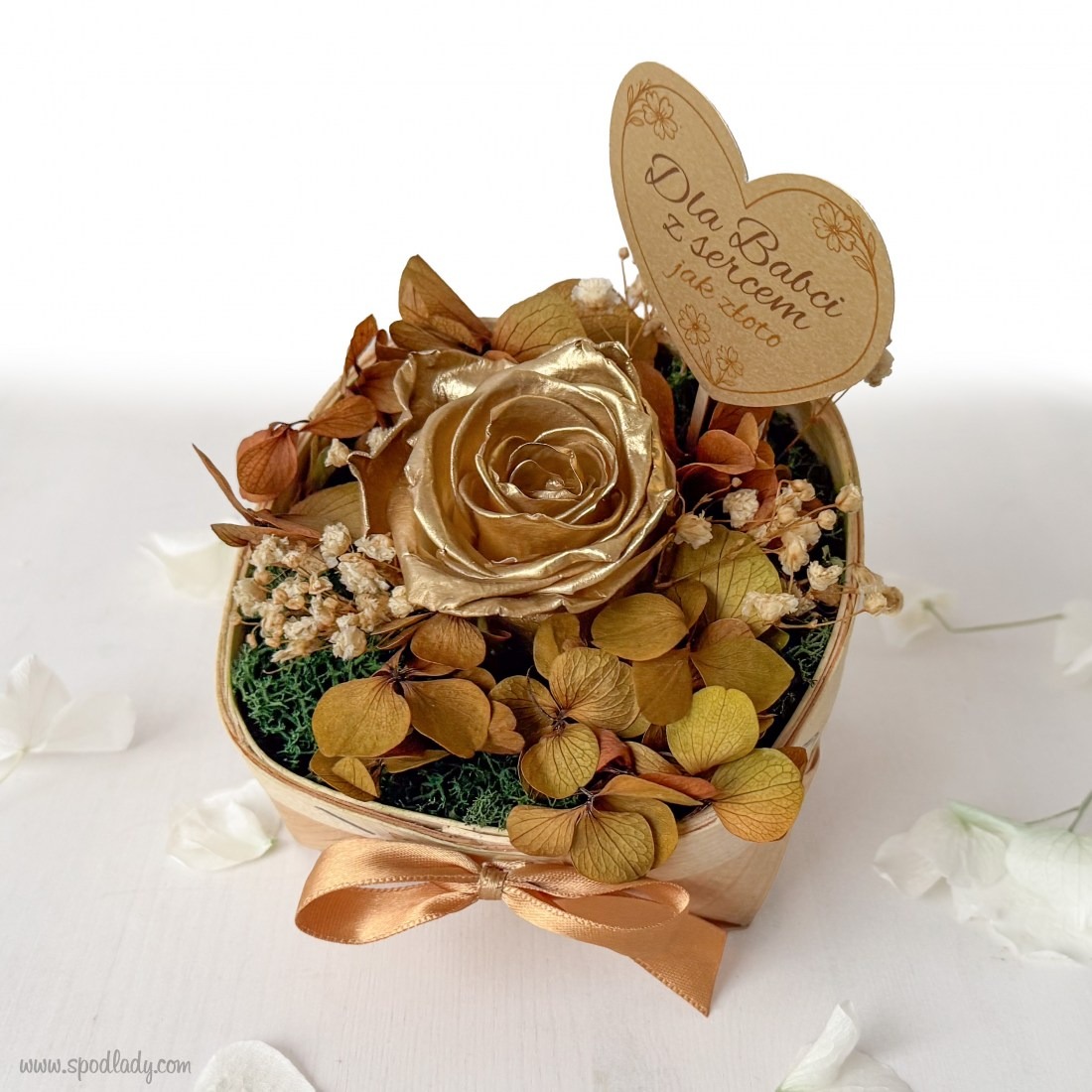 Wieczna róża - naturalna, stabilizowana róża złota w prezencie dla ukochanej Babci na Dzień Babci, urodziny i każdą inną okazję.